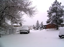 倉庫前の冬景色 氷柱が身長を超えた超えた アリゾナでも雪は降る