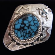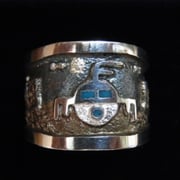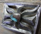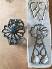 トゥーファキャストとはトゥーファという石を使用したナバホ族の伝統的な鋳造製法です。 トゥーファ鉱山より採掘されるいわゆる軽石のような石で非常にもろく、良質なトゥーファは彫刻に適しています。 2枚のトゥーファのうち、片方のトゥーファにデザインを彫刻し、2枚合わせたトゥーファの溝にシルバーを流し込んで行う鋳造製法です。 大変手間がかかるため、今ではこの製法でジュエリーを制作するアーティストは少なくなっています。 リトルフェザーではアメリカ南西部のトゥーファ鉱山より高品質のトゥーファを採掘し、デザインを彫刻しています。